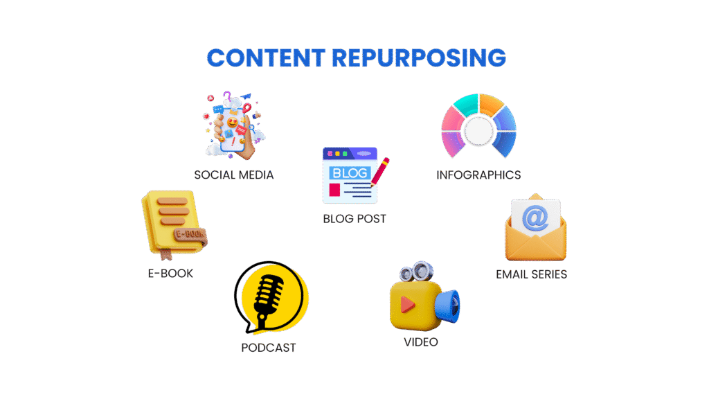 • Repurposing isn’t just about saving time. It multiplies reach, boosts content shelf life, and maintains that every piece of content delivers more than once.