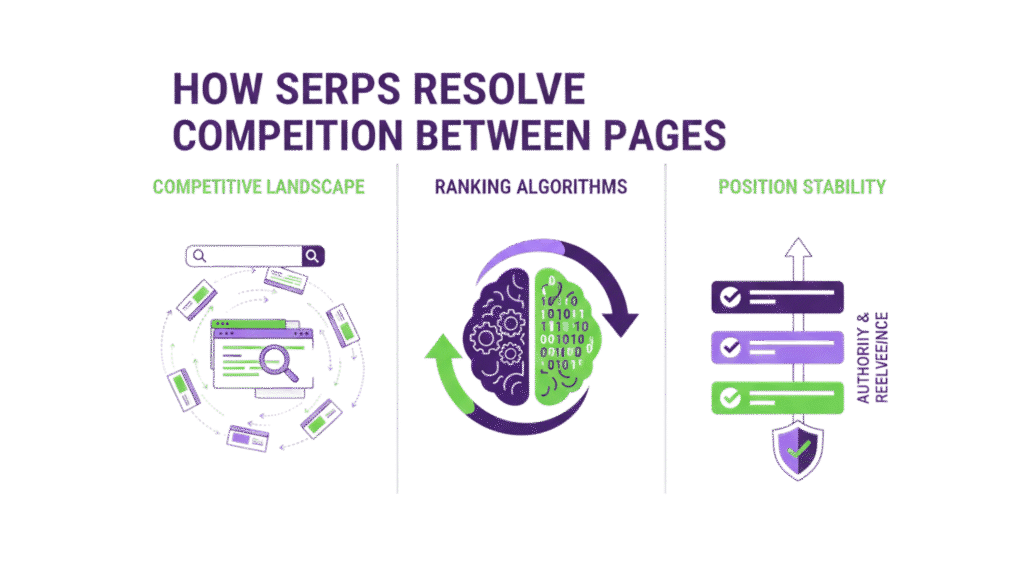 Once intent coverage is distributed, pages are evaluated by role, not general quality. A long-form blog does not compete with product pages online. Similarly, a local listing is not competing with a thought-leadership article. Competition only exists between pages serving the same function inside the SERP.