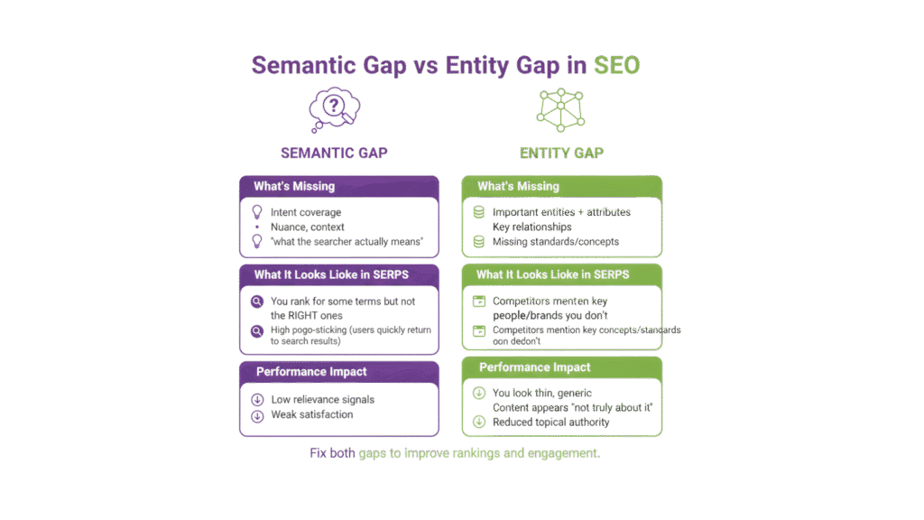 When a small site tries to outrank competitors, the first confusion is diagnosing the gap wrong. A content gap means the page is not answering enough questions buyers silently expect. Authority gaps are not about missing links. They are about the engine not trusting the page to hold a category position yet.