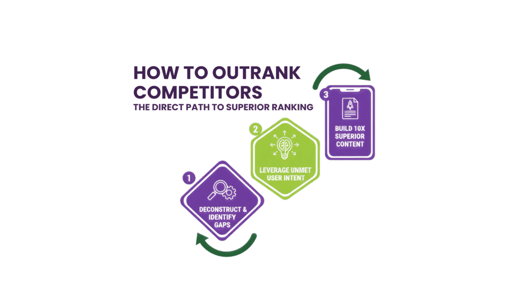 Once SERP mechanics and limits are clear, competitor insights can be translated into strategy. These techniques help to outrank competitors without copying formats or tone. The goal is to win roles on the results page by owning intent layers that others overlook.