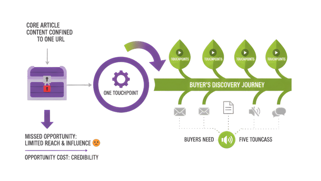The opportunity cost isn’t just reach. It’s credibility. Without repurposing, you limit your presence to one touchpoint when buyers need five.
