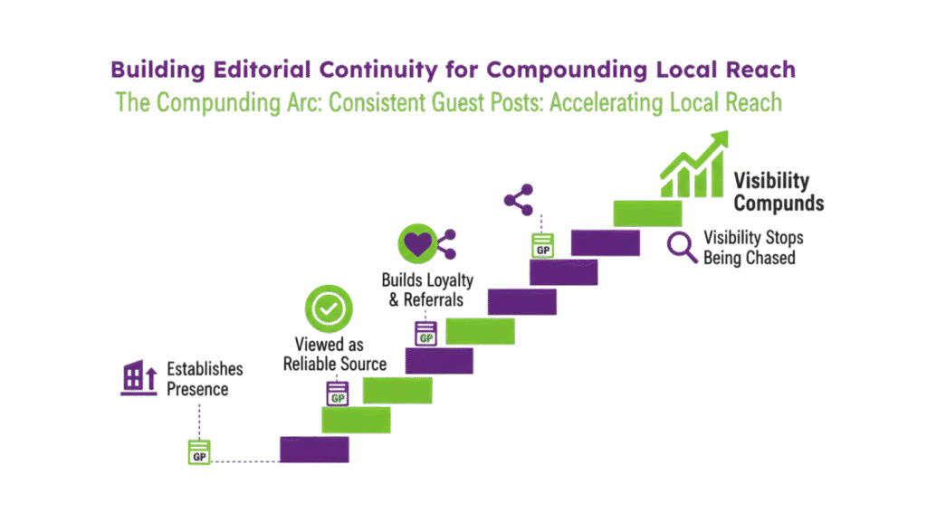 Local guest posting works when a business becomes part of its surroundings, more than just being visible in them.