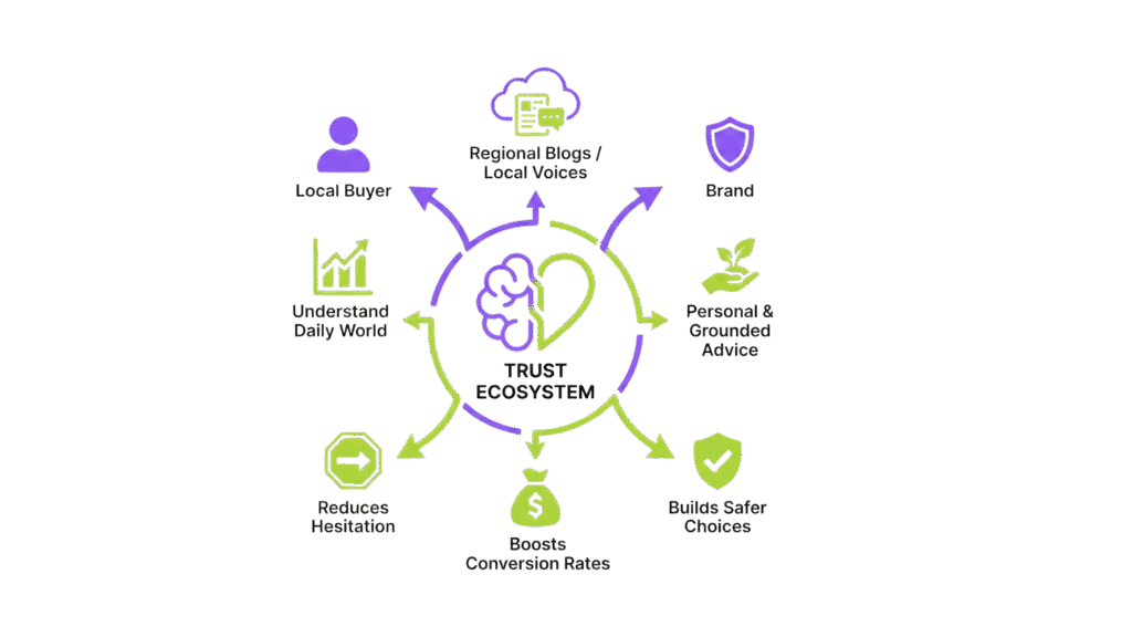 Readers trust voices that share their environment. They feel seen by content that reflects their world. They trust recommendations shaped by community truths. This makes each mention highly influential.