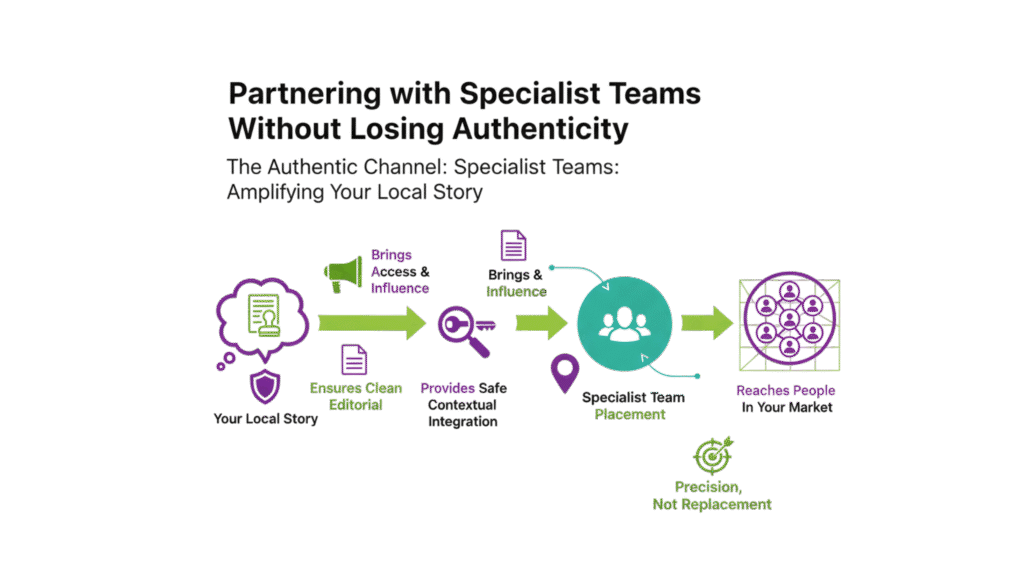 They bring access, clean editorial environments, and safe contextual integration. But they can only amplify what you give them. When you provide the local story, the partner ensures it reaches the right audience, like people who live in your market, search within your market, and buy inside your market.