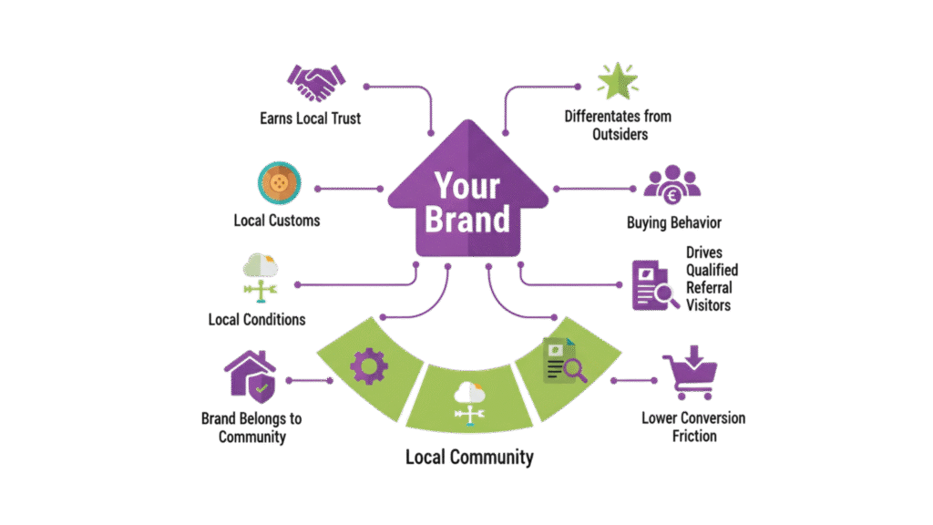 Local mention reduces hesitation during discovery. It signals proximity, care, and understanding. Buyers assume better service from familiar brands. They feel safer choosing local recommendations.