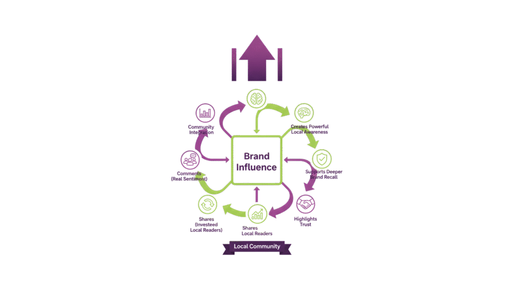 This strategy works because readers value local relevance. They trust businesses that appear regularly and respond to brands seen in trusted channels.