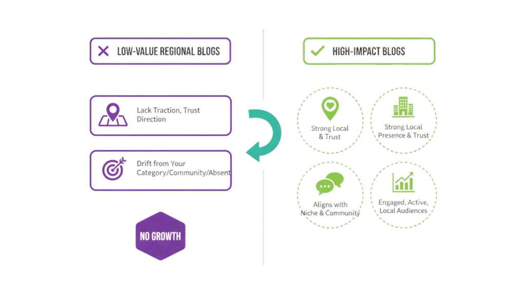 Some regional blogs exist only for paid placements. They lack community depth and search credibility. They display thin content and weak authority patterns. These sites offer low-quality signals and weak referral value.