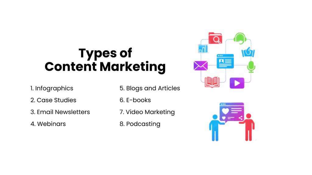 Content marketing agencies produce blogs, articles, whitepapers, ebooks, case studies, infographics, and newsletters. Each format is designed to educate, engage, and build trust with business audiences, while supporting SEO, thought leadership, and lead generation goals.