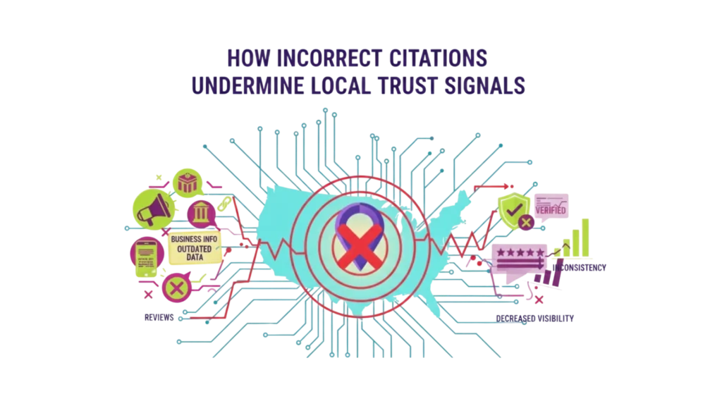 Incorrect citations undermine local trust by increasing ambiguity, reducing certainty, and weakening confirmation signals. The resulting ranking drops are a downstream effect, not the initial problem. Search engines do not react aggressively. They become cautious.
