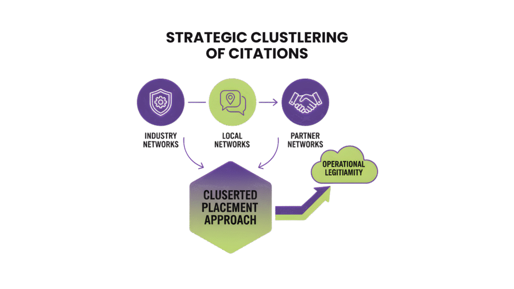 The secret lies in using a clustered placement approach. Aligning your brand’s citations across local, industry, and partner networks strengthens citation building for local SEO.