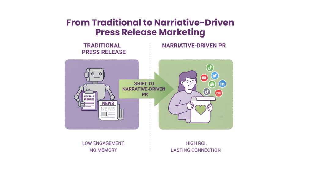 Emotional impact boosts immediate recognition and long-term business outcomes. Storytelling positions your press releases as a strategic differentiator in modern PR.