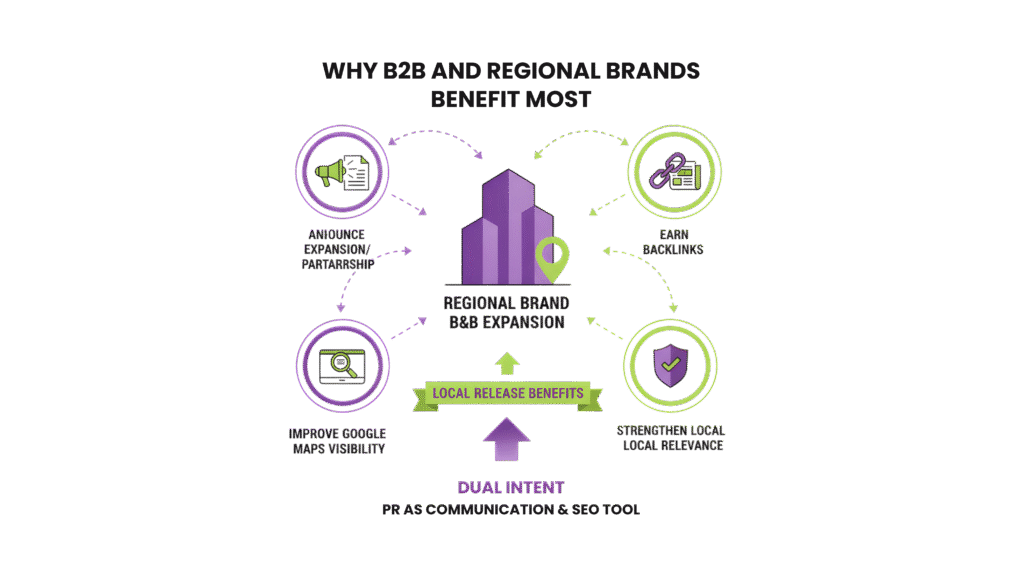 The key advantage of local press releases lies in dual intent. Optimized press release services make a single release work as PR communication and as an SEO tool simultaneously. Thus, it builds topical and geographical authority systematically.