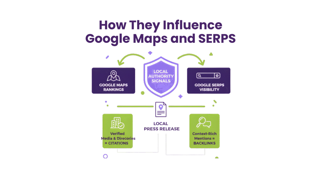 Google Maps rankings rely on consistent, verified business details across the web. A well-written local press release reinforces that data through NAP mentions and backlinks to your website or listing. This consistency signals authority to Google, helping your brand appear more prominently in map results.