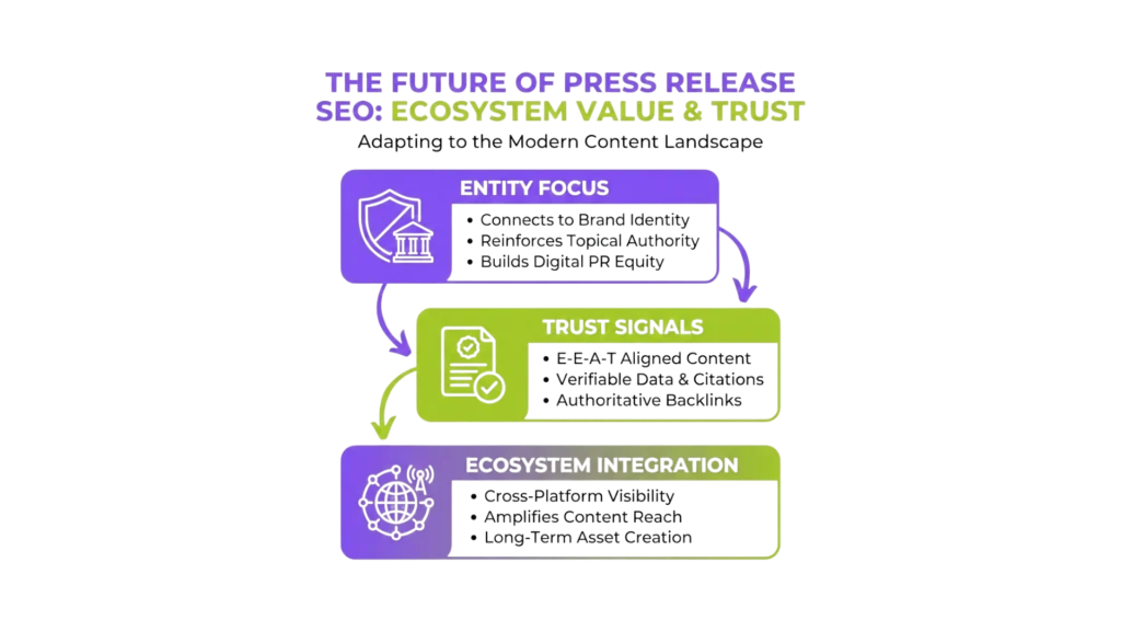 This shift is a direct response to how search evaluation now works. Google updates increasingly reward clarity, consistency, and contextual authority over volume or repetition. Within that environment, press release SEO has moved from a tactical add-on to a strategic layer that supports long-term search trust.