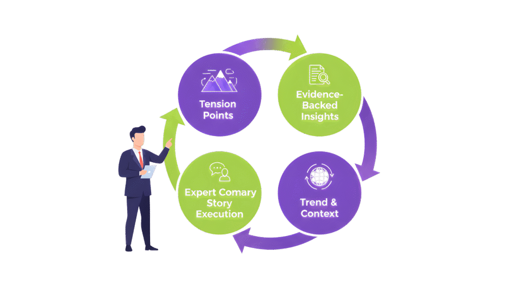When decision-makers encounter a story that clearly contextualizes your offering within ongoing industry shifts, it fast-tracks understanding and primes internal alignment across committees.