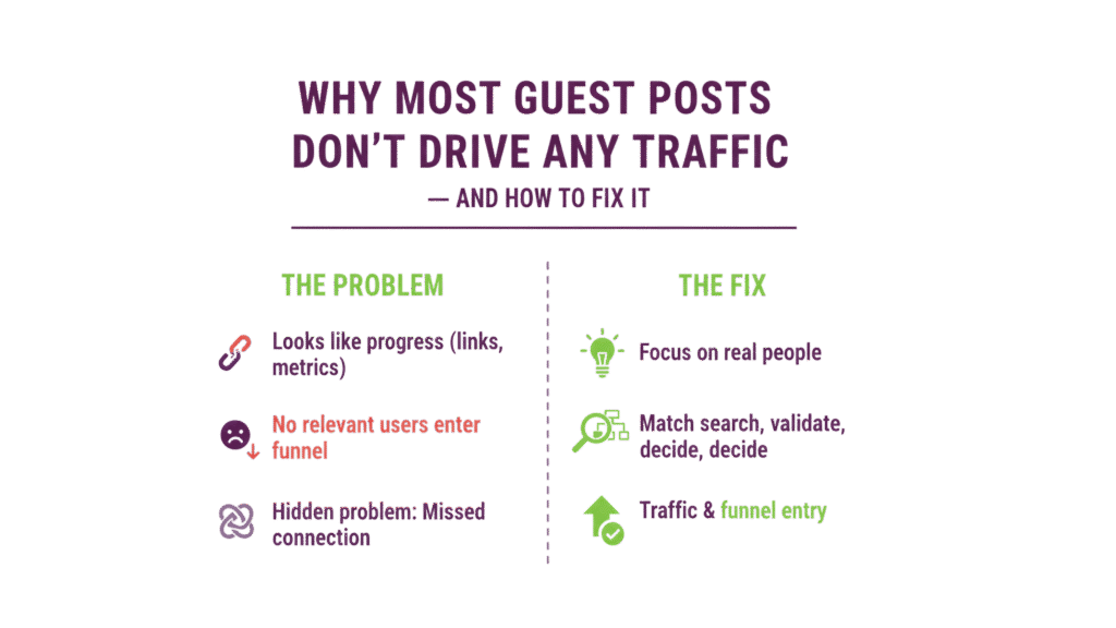 This diagnosis sharpens every decision. It explains why guest posts not driving traffic becomes a repeated issue. It shows where friction forms and why it persists.