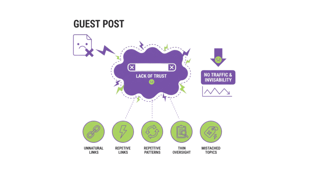 They happen when guest posts ignore platform intent, audience priorities, or link behavior. Many brands assume placements guarantee attention. Today’s search environments reward relevance, trust, and user value.