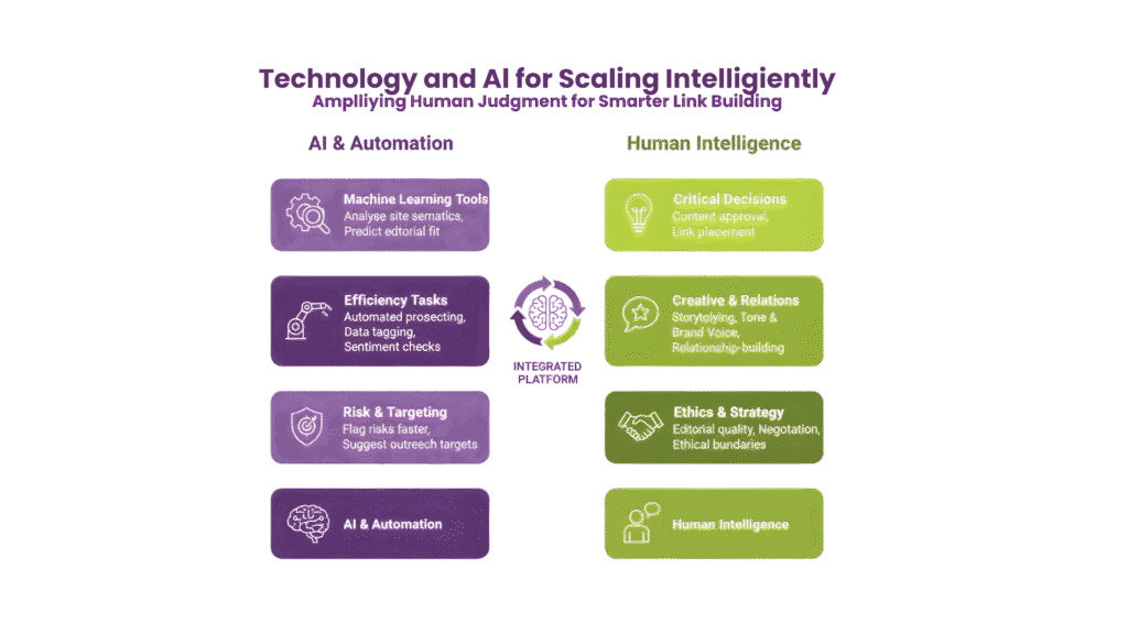 Machine learning tools can analyse site semantics, cluster topics, or predict editorial fit. They can also be used to flag risks faster and suggest smarter outreach targets.