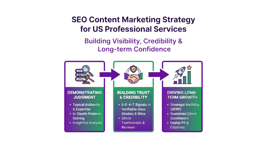 SEO content marketing for US professional services succeeds when it respects how trust is formed. Visibility without authority creates attention, not confidence. Authority without clarity creates confusion, not demand.